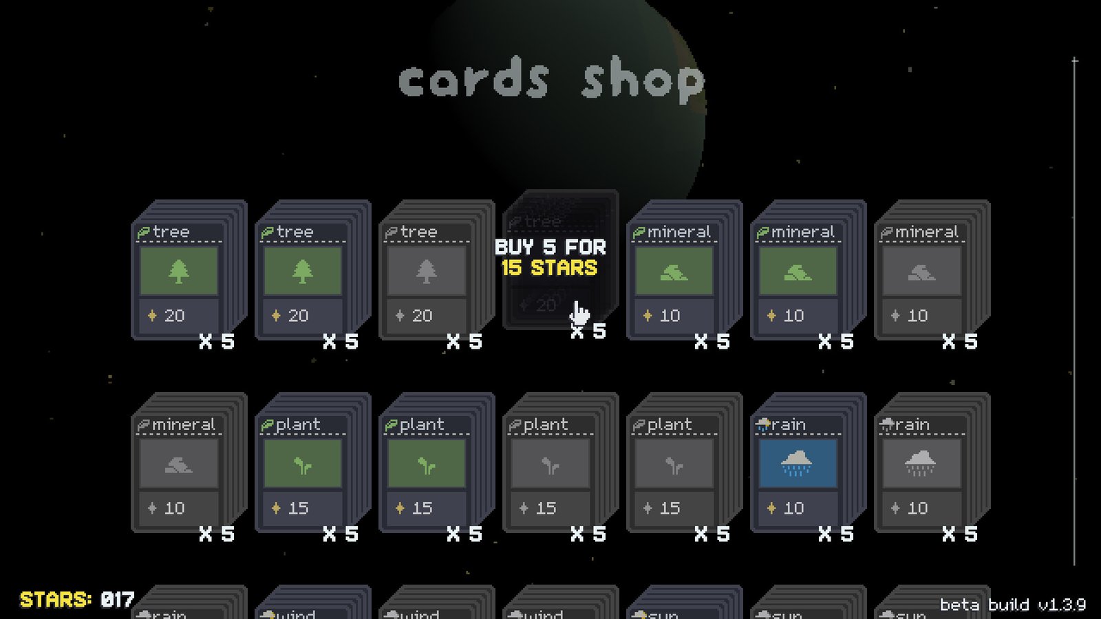 《西米岛》采用了极简主义风格,玩家可以通过收集资源并花费资源购买卡牌来管理这个世界。在本作中,玩家卡牌的数量并非无限,一旦卡牌用完,玩家面临的就只有末世卡,常规游戏流程就将结束。所以本作的挑战就是使用数量有限的卡牌将流程维持下去。