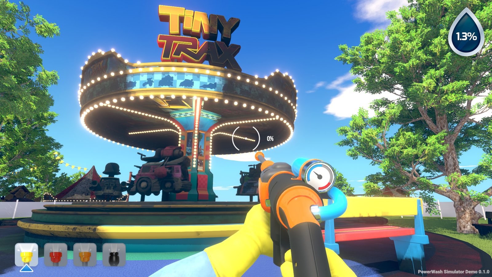 《强力清洗模拟器(PowerWash Simulator)》是一款十分有趣的休闲解压玩法的游戏,玩家可以使用高压洗净机和几种喷嘴,将附着在各种各样的地方的顽固污渍清除干净,让舒缓的高压水声洗去你的烦恼。